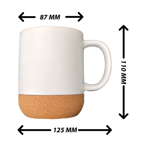 This mug is crafted from high-grade ceramic. The material ensures durability and consistent sublimation results. The matte coating is specifically designed to accept full colour sublimation ink beautifully. Rich colours and fine details transfer with impressive clarity. The cork base is natural and removable, adding a tactile premium feel. It also protects surfaces from heat and scratches during everyday use. Together, the ceramic and cork create a product that feels considered and well-made.