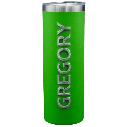 This tumbler is designed exclusively for laser engraving. It is not suitable for sublimation printing. The lime engraving coating responds cleanly and precisely to laser engravers. Names, monograms, sports logos, geometric patterns, and bold typography all perform exceptionally well. A rotary attachment is strongly recommended for even, consistent engraving around the full curved surface. Remove the push-on cap before engraving every time. The engraved areas reveal a bright silver tone against the vivid lime background. This produces a sharp, high-energy finish that photographs brilliantly and sells powerfully across sports, fitness, and lifestyle markets. Always test one tumbler before starting a full production run.
