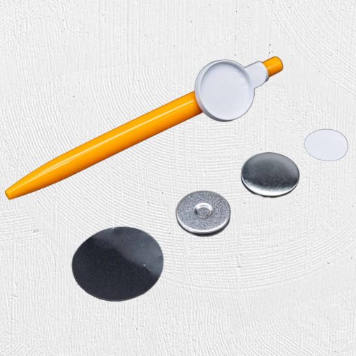 This set is for a 25 mm button badge machine. Consists of 10 fronts and 10 orange pen 25mm backs.