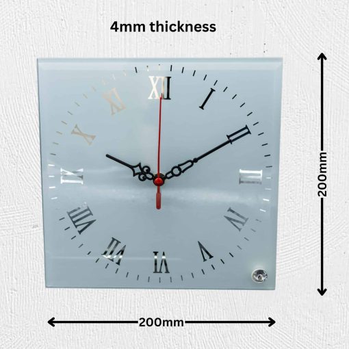 Product Name: Sublimation Blank Clock with Roman Numerals (Mirror Glass; Square; 200mm x 200mm)