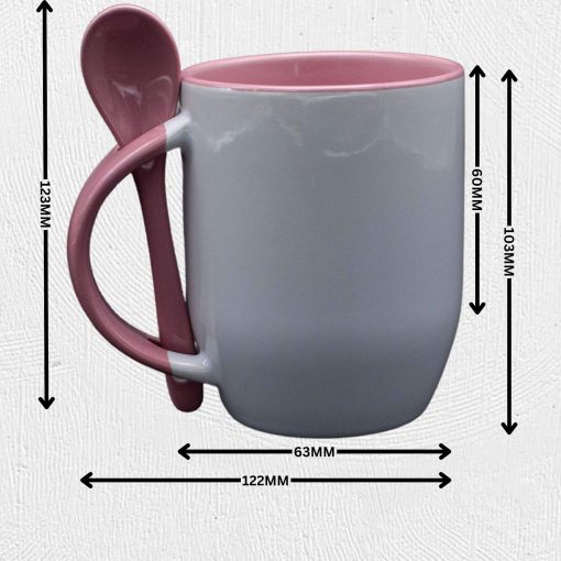 Discover our Pink Two-Tone Ceramic Mug with Spoon, a charming sublimation blank that blends style with functionality. Featuring a delightful two-tone design and an integrated spoon for convenience, this mug provides a perfect canvas for your custom artwork, logos, or heartfelt messages. Ideal for personalized gifts or adding a special touch to your daily routine.