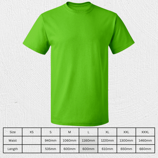 Easy to Customize: Whether you’re printing for personal projects or for a business, this t-shirt is an excellent choice for creating unique, custom apparel. The lime color provides a fresh, youthful look that pairs well with all types of designs.