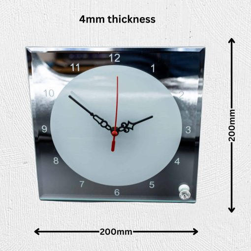Description: Elevate your timepiece collection with our Mirror Glass Clock. Featuring a sleek and modern design, this sublimation blank offers endless customization possibilities, allowing you to create a personalized clock that matches any decor. Crafted from high-quality mirror glass, it provides a reflective surface that adds a touch of elegance to any room while showcasing your custom design. Whether you’re looking to craft a stunning gift or create branded merchandise, this clock is the perfect canvas for your creativity.